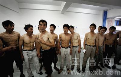 瘦骨嶙峋,根根肋骨外凸。15個(gè)赤裸著上身的男子,在病房里排隊(duì)照相留念,他們是鹽津縣鹽井鎮(zhèn)的一群矽肺病患者。面對(duì)死亡,他們臉上露出幾分苦澀的笑容,最大的愿望就是希望自己能夠活下去。