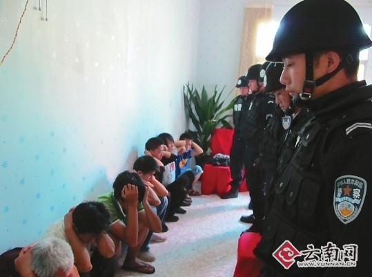 前晚11點(diǎn)左右,昆明市西園路上出現(xiàn)了一條長(zhǎng)長(zhǎng)的警車(chē)隊(duì)伍,車(chē)上除民警外,還有91名垂頭喪氣的“乘客”。幾個(gè)小時(shí)前,正在晉寧縣晉城鎮(zhèn)參于賭博的他們,被突然出現(xiàn)的民警逮了個(gè)正著。