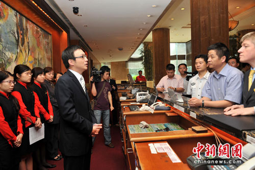 希爾頓重慶總經(jīng)理冀宏飛向檢查驗(yàn)收組介紹說,在被警方停業(yè)整頓后,重慶希爾頓酒店對(duì)酒店高層、主管和員工進(jìn)行了培訓(xùn),集中學(xué)習(xí)政府和警方相關(guān)的法律法規(guī)。來自希爾頓(中國)上海總部的兩名保安部高管今天也將抵達(dá)重慶,對(duì)重慶希爾頓酒店的安保人員進(jìn)行培訓(xùn)和重組。