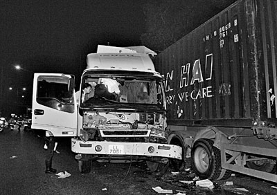 事發(fā)凌晨1時(shí)許,一輛密斗貨車由23歲姓陳司機(jī)駕駛,載妻子沿屯門公路入屯門。據(jù)現(xiàn)場目擊者稱,該輛貨車行駛時(shí)不斷在路面左穿右插爬頭,途至上址失控,撞向前行一輛20呎長、裝滿塑料粒的貨柜車尾部。密斗貨車車頭嚴(yán)重?fù)p毀,擋風(fēng)玻璃飛脫;前座女乘客懷疑沒有佩戴安全帶,當(dāng)場從車頭飛出數(shù)米外墮地,復(fù)被密斗貨車卷入車底,左前輪更輾過她左上臂而重傷。