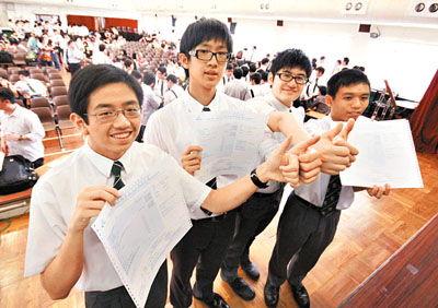 另一所傳統(tǒng)名校喇沙書院,約有30人取得6優(yōu)或以上的拔尖資格,較去年的26個有所增加。當(dāng)中2名屬“10優(yōu)狀元”。剛退休的校長王仁杰昨一早回到學(xué)校,與學(xué)生共度發(fā)榜時光,其就讀喇沙的兒子考得4A3B3C佳績,他十分滿意。兩名喇沙狀元郭凱杰和林凱健,前者指傾向修讀與商科有關(guān)科目,后者則已立愿讀醫(yī)。