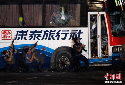 中新網(wǎng)8月23日電 香港康泰旅行團(tuán)在菲律賓遭槍手挾持事件流血收?qǐng),警察?qiáng)攻巴士擊斃槍手,至少7名港人死亡。