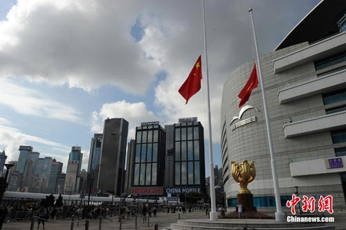 根據(jù)國務(wù)院通知,當(dāng)日所有特區(qū)政府及中央駐港機構(gòu)的國旗下半旗致哀。而港府也發(fā)布,默哀期間,除緊急及出入境服務(wù)外,其它政府服務(wù)暫停;當(dāng)值的政府人員在辦公地點參與默哀。