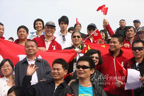 昨日(22日),香港奧委會(huì)主席霍震霆也親臨賽場(chǎng),和眾多觀眾一起為比賽加油喝彩;糁飨專門到香港馬迷集中的看臺(tái)和大家一起,高舉國旗和香港特區(qū)區(qū)旗齊聲吶喊,為每一位賽手鼓勁加油。(陳曉鐘)