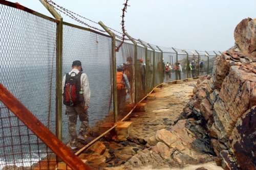 與此同時,深港邊界海岸線拆除工程亦全面展開。廣東省邊防總隊人士透露,海岸線不再壁壘森嚴(yán),部分地段安裝的鐵網(wǎng)將全部拆除,取而代之的是美觀的告示牌,所有崗樓改為服務(wù)型執(zhí)勤工作室,預(yù)計該項工程在明年底可全線完工。如今,在深圳灣、大鵬灣這些當(dāng)初偷渡者入海的熱門地段,所有鐵絲網(wǎng)已拆除并改建成悠閑游玩的濱海長廊,其中“明思克航母主題公園”海堤、紅樹林濱海棧道都已成了深港市民追捧的“零距離看海”好去處。