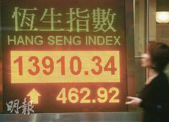 恒指24日勁升462點(diǎn),收報13910點(diǎn),直逼14000點(diǎn)關(guān)口,成交同時增加,港元匯價又告轉(zhuǎn)強(qiáng),或反映有資金流入香港。香港金管局24日晚再向市場投入31億港元,這是自上周五以來第三次向市場注資,令截至本周五銀行體系結(jié)余增至1232億元。任志剛24日早被香港傳媒問及時,稱注資很正常。