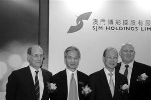 澳門博彩控股行政總裁蘇樹輝、營運總裁吳志誠、業(yè)務(wù)發(fā)展總裁麥輝霆、財務(wù)總監(jiān)麥文彬25日在香港香格里拉酒店介紹上市程序。