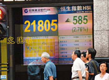 香港恒生指數(shù)9日上升585點(diǎn)。(圖片來源:文匯報(bào))