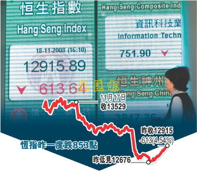 凱基證券亞洲區(qū)營(yíng)運(yùn)總裁鄺民彬指,18日港股雖然跌幅較大,但相信并非新一輪的尋底,這次的跌浪未必會(huì)跌至上次10600點(diǎn)的低位。以現(xiàn)市況來(lái)看,外圍經(jīng)濟(jì)衰退是港股的最大負(fù)面因素,而中央4萬(wàn)億元刺激經(jīng)濟(jì)則為正面因素,但18日內(nèi)地A股已見(jiàn)回吐,反映這個(gè)利好因素漸消退,令港股突然出現(xiàn)崩盤(pán)。