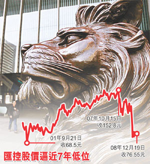 中新網(wǎng)12月22日電 香港《文匯報(bào)》今日在要聞版報(bào)道,大笨象匯控沽壓未完,該股在美國的預(yù)托證券曾一度跌逾8%,低見69.5元,收市折合價為70.6元,雖險守70元關(guān)口,但仍較港股上周五收市大跌7.7%,故市場人士預(yù)期,今日匯控在香港可能會重現(xiàn)11月時低位,即74.75元。至于油價回落,也拖累石油石化類股份表現(xiàn),中海油及中石油分別跌2.5%及0.57%,所以今日恒指可能會大幅低開逾300點(diǎn)。