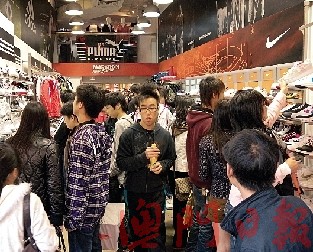 現(xiàn)場(chǎng)觀察,平均每3分鐘賣出一對(duì)球鞋,但鞋店負(fù)責(zé)人表示,雖人流暢旺,上周六生意額更達(dá)5萬(wàn)左右,生意仍比去年少20%至30%。“去年收錢收到手軟,今年拿鞋拿到手軟!”顧客喜歡試鞋,卻未必購(gòu)買。以往更常見(jiàn)家庭客,一次購(gòu)買3、4雙鞋,今年顧客“一雙起、兩雙止”。