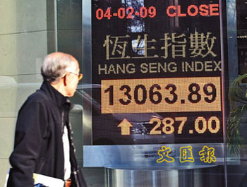 中新網(wǎng)2月5日電 據(jù)香港《文匯報》報道,港股跟隨美股及內(nèi)地股市反彈,大市高開253點,大市在重磅股匯控和中移動雙雙約升2%帶動下,重越13000點,一度升逾330點,全日收報13063點,升287點,成交額365.3億元。