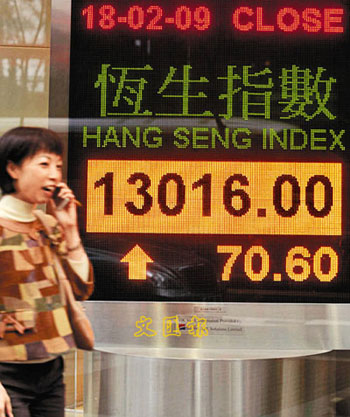 中新網(wǎng)2月19日電 據(jù)香港《文匯報》報道,美股周二急跌近300點,日韓股市也下跌情況下,令港股18日低開162點,加上午后A股跌近5%,市場普遍認(rèn)為18日港股會大瀉收場,但恒指下午在中移動、和黃等重磅股的補倉盤帶動下,來個“V”形反彈,從底部急彈300點,令港股最終倒升,并重上13000點大關(guān)。