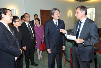 下午,代表團(tuán)與莫斯科市政府第一副市長兼經(jīng)濟(jì)政策及發(fā)展主管Yuri Vitalyevich Roslyak會面。會上,曾俊華向副市長闡述香港抵御全球金融危機(jī)效應(yīng)的措施,雙方又探討可供兩地合作的范疇。