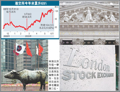 該媒體引述富時Mondo Visione的報告稱,在金融海嘯下,歐美的交易所市值急挫,港交所與巴西交易所的市值則在近月大幅回升,目前最大市值的交易所為美國的CME集團(芝加哥期貨交易所),第二便是港交所,第三是德國交易所,第四為巴西交易所,倫敦交易所只占第十位。