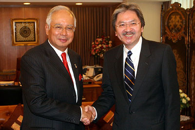 中新網(wǎng)3月18日電 據(jù)香港特區(qū)政府網(wǎng)站消息,香港財政司司長曾俊華17日與馬來西亞首相納吉布會面,并同意開展兩地避免雙重征稅協(xié)議的工作,加強兩地之間的緊密經(jīng)濟關系。