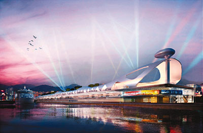香港建筑署向立法會提交的文件展示郵輪碼頭構(gòu)思圖,占地7.6公頃的碼頭區(qū)具濃厚時代感,其中即將向立法會申請撥款58.5億元興建的碼頭大樓,外貌更猶如巨鯨游走維港,相信在晚上燈火通明下更具氣勢。