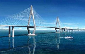 據(jù)方案估算,大橋用鋼量達(dá)123.35萬噸,較杭州灣跨海大橋多一半,相當(dāng)于建造11個“鳥巢”國家體育場。