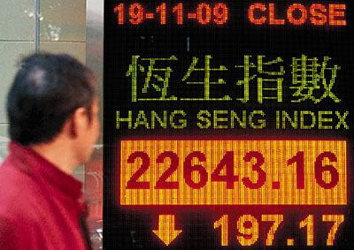 中新網11月20日電 據香港《文匯報》報道,受外圍股市偏軟影響,恒指19日高開56點后即向下,午后跌幅進一步擴大,最低曾見22587.18點,全日收報22643.16點,跌197.17點,全日總成交697.69億元,國企指數跌217.03點至13470.98點。