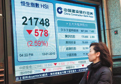 人民銀行周二晚出其不意宣布上調(diào)銀行存款準備金率50個基點,凍結(jié)近3000億元人民幣資金,市場擔憂內(nèi)地收緊銀根措施陸續(xù)有來,拖累亞太區(qū)主要股市急挫。市場12日晚普遍預(yù)期13日港股會跌約300至400點,結(jié)果跌幅更超預(yù)期。恒指低開336點,午后跌幅擴大,最多跌638點,收市報21748.6點,跌578點,跌幅達2.6%。