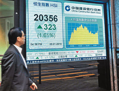 中新網(wǎng)1月29日電 據(jù)香港《文匯報》報道,聯(lián)儲局議息結(jié)果顯示前景樂觀,外圍股市回穩(wěn),連跌6天的港股在期指結(jié)算日也借機(jī)反彈,恒指最多彈逾400點,全日收報20356點,升323點,升幅1.6%,扭轉(zhuǎn)6天的跌勢,但成交額卻減至664.7億元,反映買盤不活躍。