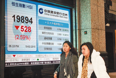 中新網(wǎng)2月20日電 據(jù)香港《文匯報(bào)》報(bào)道,美國(guó)突然調(diào)高貼現(xiàn)利率,市場(chǎng)擔(dān)心美國(guó)會(huì)提早退市及加息,港股急跌528點(diǎn),失守20000點(diǎn),跌幅達(dá)2.6%,是19日亞太區(qū)股市中表現(xiàn)最差的市場(chǎng)。香港地產(chǎn)股、內(nèi)銀股及資源股成為跌市重災(zāi)區(qū),成交淡靜只有430.7億元。