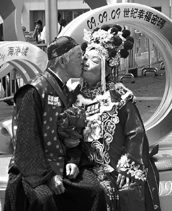 中新網(wǎng)9月9日電 據(jù)香港《文匯報(bào)》報(bào)道,今天是2009年9月9日,世紀(jì)一遇的“長長久久”日子,已“執(zhí)子之手,與子皆老”的香港人鐘氏夫婦,希望可以繼續(xù)愛到白頭。