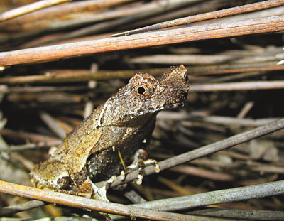 發(fā)掘?qū)W生組“十大熱點(diǎn)”冠軍的蘇樂軒,現(xiàn)就讀香港大學(xué)生態(tài)及生物多樣性學(xué)系,他在一次生態(tài)夜行中,在龍虎山郊野公園發(fā)現(xiàn)愛“夜蒲”的短腳角蟾。他指出,短腳角蟾是香港原生物種,臉上有角,樣子趣怪,多在夜間出沒,雄性更會(huì)在每年夏春的繁殖期利用叫聲吸引雌性,已被世界保育聯(lián)盟評(píng)為瀕危物種。
