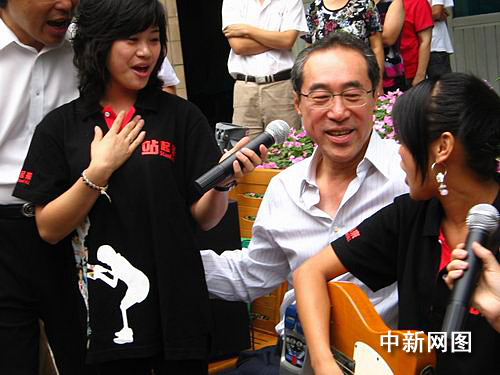 在地震傷員康復(fù)中心,唐英年受到了熱烈的歡迎。今年10歲的夏鳳婷地震時(shí)右肘部骨折,但愛好畫畫的她用安裝的機(jī)電手,為唐司長(zhǎng)畫了一幅色彩斑斕的海上日出。幾位腿部受傷的少女聲情并茂地唱起了《小城故事》,在她們動(dòng)人歌聲的感染下,唐英年興致勃勃地走到中間一起唱了起來。另一位雙腿都安裝著假肢的青年則在一旁表演起了自行車,向唐司長(zhǎng)展示自己的康復(fù)成果。