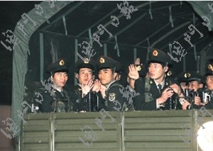由駐澳部隊指揮車、裝甲車、運輸車等二十多輛軍車組成的車隊,26日清晨5時許由珠;卣龓X營區(qū)出發(fā),取道南灣大道、橫琴大橋,經(jīng)由蓮花大橋進入本澳。車隊在警車開路下到達凼仔軍營,駐澳部隊在軍營內(nèi)舉行隆重的防務(wù)交接儀式,司令員王玉仁、政委許進林在凼仔營區(qū)迎送交替防務(wù)的兩個連隊。