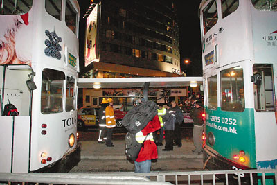 兩車乘客頓告東歪西倒,其中5男8女乘客及首輛電車車長受傷,分由多輛救護(hù)車送院敷治,尚幸各人僅為輕傷,治理后俱無大礙。警方正調(diào)查車禍肇因。