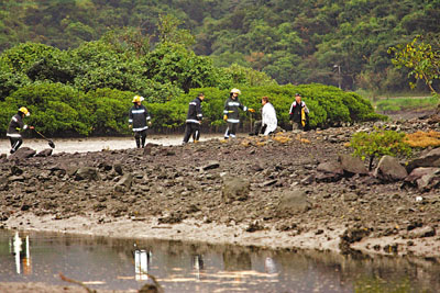 當(dāng)兩人走出約100米外,裘雙腿深陷瘀泥無法自拔,陳一度冒險(xiǎn)拯救,惜也自身難保被困,兩人被困泥灘長(zhǎng)達(dá)3小時(shí),至凌晨6時(shí)許,眼見潮漲將至隨時(shí)沒頂,唯有用手機(jī)報(bào)警求救。