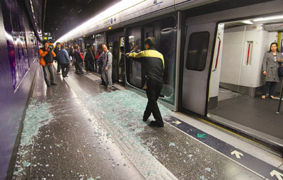 港鐵發(fā)言人表示,事發(fā)后,當值職員已用木板封閉該損毀幕墻,待工程人員收車后維修,列車服務沒有受影響,爆玻璃原因仍在調(diào)查中。