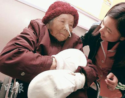 張婆婆人稱“桂妹”,是客家人,住在大埔。記者19日到老人院探望桂妹時(shí),由于沒(méi)有其親屬在場(chǎng),院方只允許記者查看桂妹入院時(shí)填寫的身份證出生日期。按入院紀(jì)錄,她身份證上印上的出生日期是1893年1月4日,即生于清朝光緒19年,由于舊派中國(guó)人只記農(nóng)歷生日,1月4日實(shí)指農(nóng)歷正月初四。