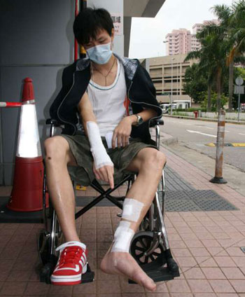 無辜遭殃的裝修工人名梁×德(28歲),左小腿及右手腕皆被腐蝕性液體濺中受傷,經(jīng)送院診治,初步確實屬三級灼傷,治療后幸無大礙已出院。消息稱,當時他戴著耳筒聽音樂,聽不到同事大叫及避走四散,以致受傷。