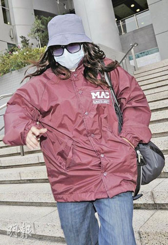應(yīng)訊后被告隨即躲進(jìn)法院傷殘人士廁格7小時(shí),其間數(shù)名記者一直在外守候,被告放棄出外午膳。至下午5時(shí)許,女被告“改頭換面”,戴著深棕色長(zhǎng)曲假發(fā),改穿棗紅色風(fēng)褸、牛仔褲及波鞋,并戴上漁夫帽、墨鏡及口罩,箭步?jīng)_出法院。一名親友到場(chǎng)接應(yīng),兩人跳上的士后,親友向在場(chǎng)記者舉起不文明手勢(shì),的士其后絕塵離去。