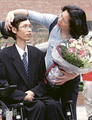 中新網(wǎng)5月9日電 有“港版霍金”之稱(chēng)的劉曉鋒大學(xué)畢業(yè)后踏足社會(huì),準(zhǔn)備了他首項(xiàng)研究的成果作母親節(jié)禮物,報(bào)答媽媽的辛勞,他說(shuō)﹕“沒(méi)有她照顧我,好多事都做不到!辈环謺円拐疹檿凿h26個(gè)寒暑的劉媽媽?zhuān)瑓s從未視之為“辛苦事”。