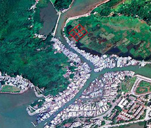 圖:大澳擬修復(fù)的鹽田位置(紅框部分)。(圖片來(lái)源:大公報(bào))