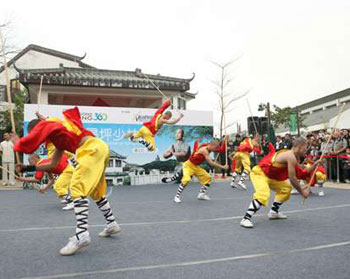 各位少林師傅還即場向旅客傳授少林弟子每天必練的基本功,讓游客在昂坪勝景中,體驗(yàn)正宗的少林武學(xué)。表演的少林師傅個個身懷絕技,其中年紀(jì)最小的魏偉不足9歲,習(xí)武已有4年,一上場輕松連翻一串筋斗,“鐵頭功”贏得掌聲不盡。有市民專門搭纜車來觀賞少林表演,并希望以后增加此類表演,豐富昂坪旅游線路內(nèi)容。