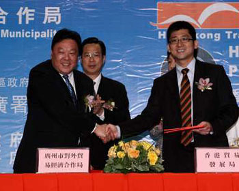 為攜手構建現(xiàn)代服務業(yè)體系,廣州市外經貿局與香港貿易發(fā)展局于發(fā)布會上,簽署了《穗港現(xiàn)代服務業(yè)合作備忘錄》,宣告穗港兩地政府將開拓合作新思維,推進現(xiàn)代服務業(yè)互利共贏。從今年起,穗港兩地政府將建立服務業(yè)合作年會制度和聯(lián)絡員制度,并重點在金融業(yè)、會展業(yè)、物流業(yè)、服務外包四大重點領域推進全面合作。