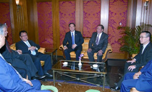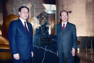 中新網(wǎng)4月16日電 據(jù)澳門日報報道,正率團訪問港澳的上海市政協(xié)主席馮國勤,15日中午應(yīng)澳門蘇浙滬同鄉(xiāng)會的邀請,出席該會的歡迎宴會,新一屆上海市政協(xié)澳門地區(qū)委員也出席。全國政協(xié)常委、澳博行政總裁何鴻燊熱情接待馮國勤一行,并陪同馮國勤參觀在新葡京酒店展出的馬首銅像。