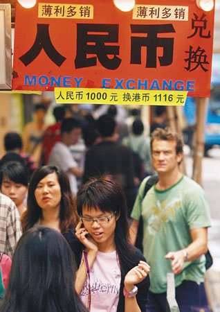 在前所未有的人民幣升值熱潮下,持“失寵”港元的港人在各方面受到?jīng)_擊,紛紛尋找對(duì)策。