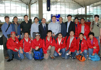 食物環(huán)境衛(wèi)生署署長卓永興、水務(wù)署署長馬利德及署理衛(wèi)生署衛(wèi)生防護中心總監(jiān)梁挺雄醫(yī)生,19日早在隊伍出發(fā)前吁請他們把香港市民的關(guān)懷和問候帶給受地震影響的災(zāi)民。他們又向救援隊的無私奉獻表示謝意,并鼓勵他們在行動中竭盡所能。