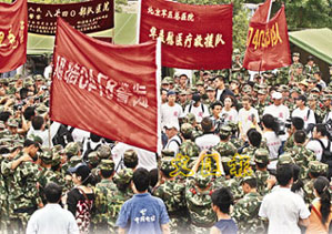 經(jīng)過約一小時的車程去到都江堰市的山峨鄉(xiāng)的一間小學遺址,在那里有數(shù)百武警軍人在救災,藝人除了高聲為他們打氣外,逐一與他們握手。之后轉往軍人正在救災的濟南軍區(qū)的軍營慰問,途中又去慰問災區(qū)民眾,有民眾見到華仔就哭。藝人在途中加油站借廁所時,路邊的民眾見到他們紛紛要求握手簽名。
