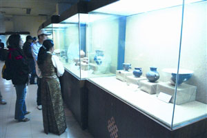 晚上,在當(dāng)?shù)赜嘘P(guān)部門的安排下,記者團一行到西藏博物館參觀。西藏博物館藏品達(dá)3萬多件,其中已整理和建檔的文物中有國家一級文物304件。