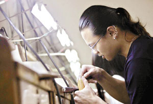 從去年9月到今年2月,陳介偉每天上課、學(xué)工藝!懊刻彀诵r(shí),大部分的時(shí)間都在實(shí)驗(yàn)室!苯(jīng)過半年的學(xué)習(xí),陳介偉掌握了雕蠟、手工、制模、石板、拋光、電鍍等一整套的工藝流程,并獲得了中級(jí)技能資格。學(xué)完了之后想干什么?陳介偉表示,他非常關(guān)注年輕人的個(gè)性飾品。