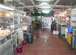 圖:澳門街市加強(qiáng)清洗,保持衛(wèi)生有助防范禽流感。(圖片來源:澳門日報(bào))