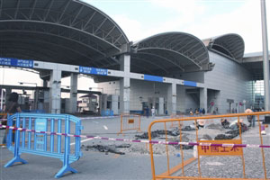 關(guān)閘出入境車道臨時(shí)交通改道措施,按照工程進(jìn)度分三階段進(jìn)行。11日首階段臨時(shí)交通改道措施,工人體育館旁的出境車道封閉,封閉期16個(gè)月,封閉后只供工程車輛出入。因應(yīng)擴(kuò)建工程在車道進(jìn)行,出境車輛須經(jīng)孫中山公園旁的車道,即西邊新建臨時(shí)車道出境。