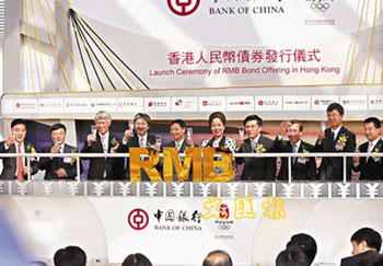 中新網(wǎng)7月14日電 據(jù)香港文匯報報道,中資銀行去年在香港發(fā)行100億元人民幣債券(簡稱人債),今年新一批人債即將面世,有指內(nèi)地五間商業(yè)銀行擬在港發(fā)行一共不少于150億元人債。