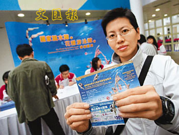 經(jīng)常前來九龍公園游泳池游水的董先生開售前半小時(shí)前來購(gòu)買7張150元的門票,以欣賞在北京奧運(yùn)會(huì)進(jìn)步最大的花泳隊(duì)表演。